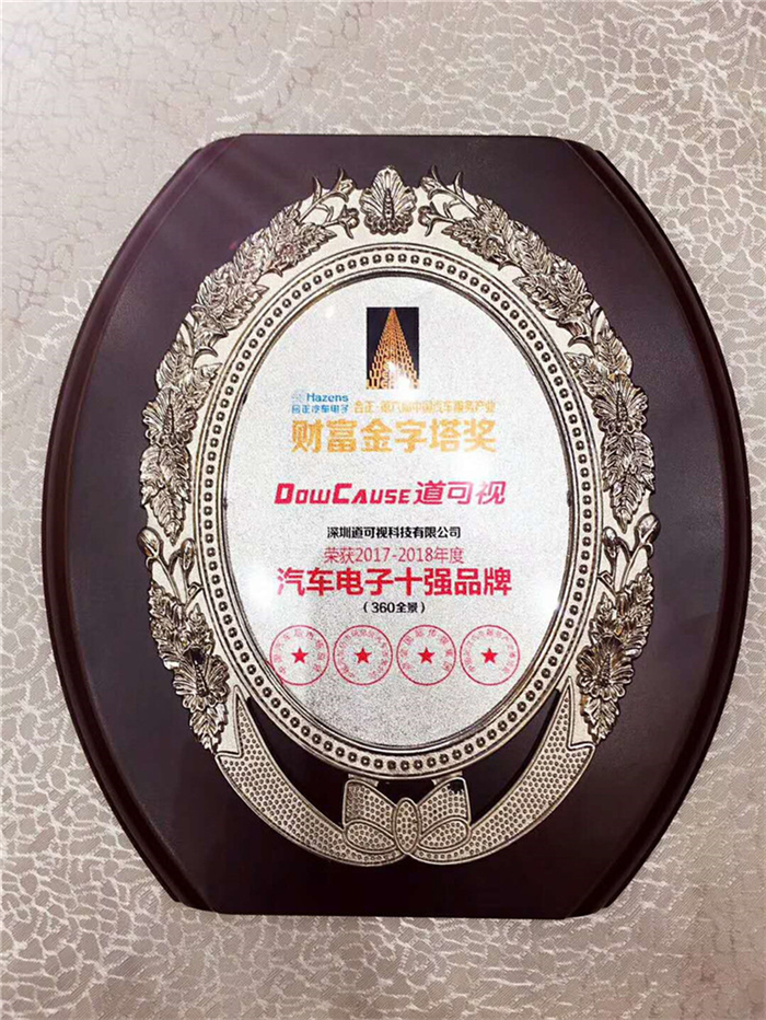 會(huì)議現(xiàn)場(chǎng),在近千人的見(jiàn)證下,深圳道可視科技有限公司憑借強(qiáng)大的技術(shù)研發(fā)能力、穩(wěn)定的產(chǎn)品性能和良好的售后服務(wù),贏得了客戶(hù)的廣泛好評(píng),榮獲第六屆財(cái)富金字塔“2017-2018年度工匠獎(jiǎng)”和“2017-2018年度汽車(chē)電子(360全景)十強(qiáng)品牌”兩項(xiàng)大獎(jiǎng)。