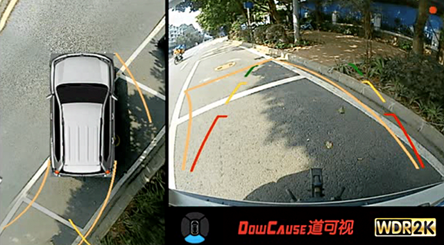 當(dāng)用戶倒車入庫(kù)時(shí),道可視360°全景中的通過(guò)“倒車影像”+“精準(zhǔn)輔助線”的方式,精準(zhǔn)計(jì)算出行車軌跡,顯示車輛泊車時(shí)車身所經(jīng)過(guò)的位置,幫助司機(jī)準(zhǔn)確入庫(kù),小白也能一步到位。