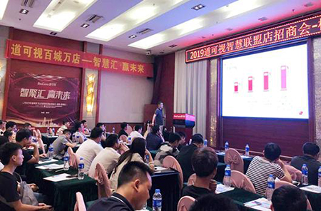 隨后,針對于大家所關注的“智慧聯(lián)盟店”,道可視大區(qū)經(jīng)理伍招權進行了重點介紹,他從市場體系、加盟方案、銷售模式和加盟優(yōu)勢四個維度進行了詳細宣講,引起現(xiàn)場終端門店的極大興趣。